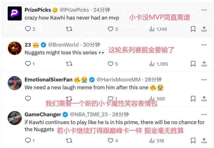 可以看到美国网友都在表示:“小卡整个职业生涯没拿过一次MVP?这件事简直就是离大谱。”、“这轮系列赛小卡打的就像是巅峰时期的自己,在猛龙时候的自己一样。”、“小卡比那个自称自己是goat的人强了太多。”